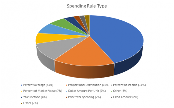 What we discovered was the “Percent Average” calculation is the most widely used in the Fundriver population. This spending method can be configured to calculate an average based on the individual fund value, overall pool value, or unit price. Users then determine a look back period and apply a distribution rate to the average value.