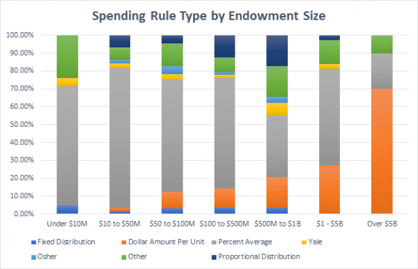 This time of year, we see many of our clients preparing their budgets for next fiscal year. During budget season, you most likely look to see what the available spend is from your endowment. Hopefully you had a great year attaining new gifts from donors and the financial markets blessed you with big returns! Here at Fundriver, we recently compiled data from over 400 current clients. Our analysis determined trends in spending policies among different sized endowments.